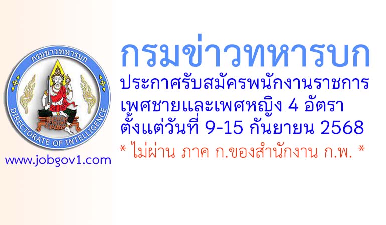 กรมข่าวทหารบก รับสมัครพนักงานราชการ 4 อัตรา ตั้งแต่วันที่ 9-15 กันยายน 2568