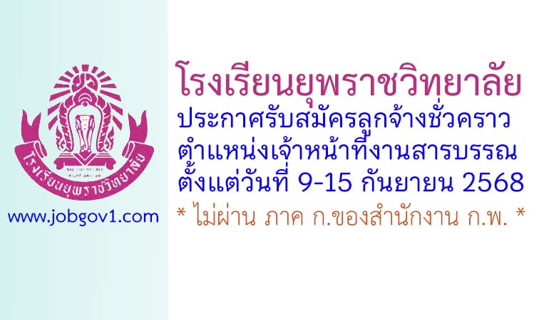 โรงเรียนยุพราชวิทยาลัย รับสมัครลูกจ้างชั่วคราว ตำแหน่งเจ้าหน้าที่งานสารบรรณ ตั้งแต่วันที่ 9-15 กันยายน 2568