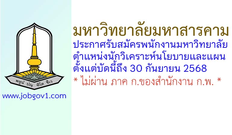 มหาวิทยาลัยมหาสารคาม รับสมัครพนักงานมหาวิทยาลัย ตำแหน่งนักวิเคราะห์นโยบายและแผนปฏิบัติการ ตั้งแต่บัดนี้ถึง 30 กันยายน 2568
