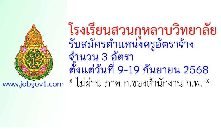 โรงเรียนสวนกุหลาบวิทยาลัย รับสมัครครูอัตราจ้าง จำนวน 3 อัตรา ตั้งแต่วันที่ 9-19 กันยายน 2568