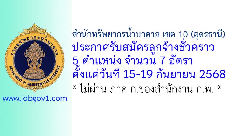 สำนักทรัพยากรน้ำบาดาล เขต 10 (อุดรธานี) รับสมัครลูกจ้างชั่วคราว 7 อัตรา ตั้งแต่วันที่ 15-19 กันยายน 2568
