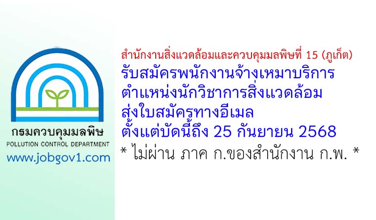 สำนักงานสิ่งแวดล้อมและควบคุมมลพิษที่ 15 (ภูเก็ต) รับสมัครพนักงานจ้างเหมาบริการ ตำแหน่งนักวิชาการสิ่งแวดล้อม ตั้งแต่บัดนี้ถึง 25 กันยายน 2568
