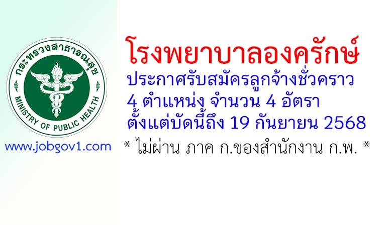โรงพยาบาลองครักษ์ รับสมัครลูกจ้างชั่วคราว 4 อัตรา ตั้งแต่บัดนี้ถึง 19 กันยายน 2568