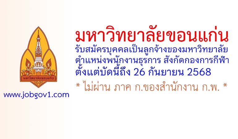 มหาวิทยาลัยขอนแก่น รับสมัครบุคคลเป็นลูกจ้างของมหาวิทยาลัย ตำแหน่งพนักงานธุรการ สังกัดกองการกีฬา ตั้งแต่บัดนี้ถึง 26 กันยายน 2568