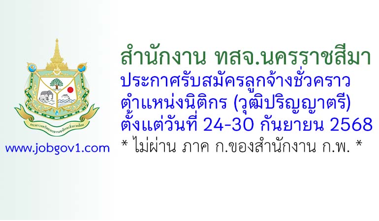 สำนักงาน ทสจ.นครราชสีมา รับสมัครลูกจ้างชั่วคราว ตำแหน่งนิติกร ตั้งแต่วันที่ 24-30 กันยายน 2568