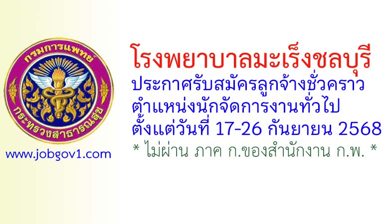 โรงพยาบาลมะเร็งชลบุรี รับสมัครลูกจ้างชั่วคราว ตำแหน่งนักจัดการงานทั่วไป ตั้งแต่วันที่ 17-26 กันยายน 2568
