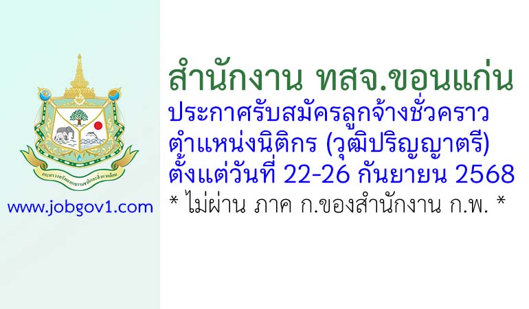 สำนักงาน ทสจ.ขอนแก่น รับสมัครลูกจ้างชั่วคราว ตำแหน่งนิติกร ตั้งแต่วันที่ 22-26 กันยายน 2568