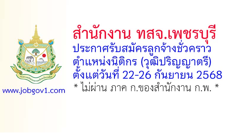 สำนักงาน ทสจ.เพชรบุรี รับสมัครลูกจ้างชั่วคราว ตำแหน่งนิติกร ตั้งแต่วันที่ 22-26 กันยายน 2568