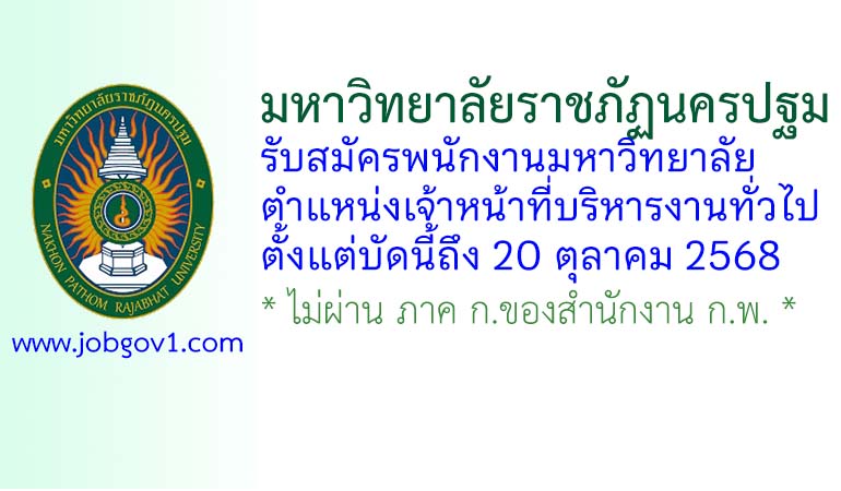 มหาวิทยาลัยราชภัฏนครปฐม รับสมัครพนักงานมหาวิทยาลัย ตำแหน่งเจ้าหน้าที่บริหารงานทั่วไป ตั้งแต่บัดนี้ถึง 20 ตุลาคม 2568