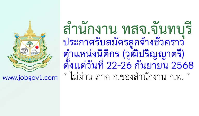 สำนักงาน ทสจ.จันทบุรี รับสมัครลูกจ้างชั่วคราว ตำแหน่งนิติกร ตั้งแต่วันที่ 22-26 กันยายน 2568