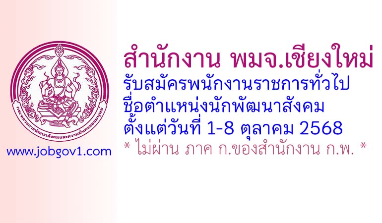 สำนักงาน พมจ.เชียงใหม่ รับสมัครพนักงานราชการทั่วไป ตำแหน่งนักพัฒนาสังคม ตั้งแต่วันที่ 1-8 ตุลาคม 2568