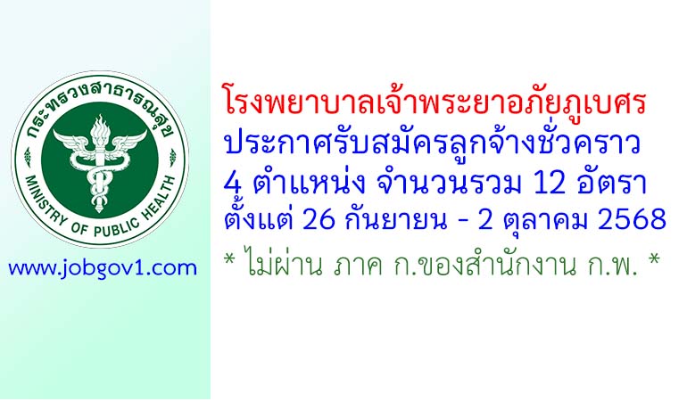 โรงพยาบาลเจ้าพระยาอภัยภูเบศร รับสมัครลูกจ้างชั่วคราว 12 อัตรา ตั้งแต่ 26 กันยายน – 2 ตุลาคม 2568
