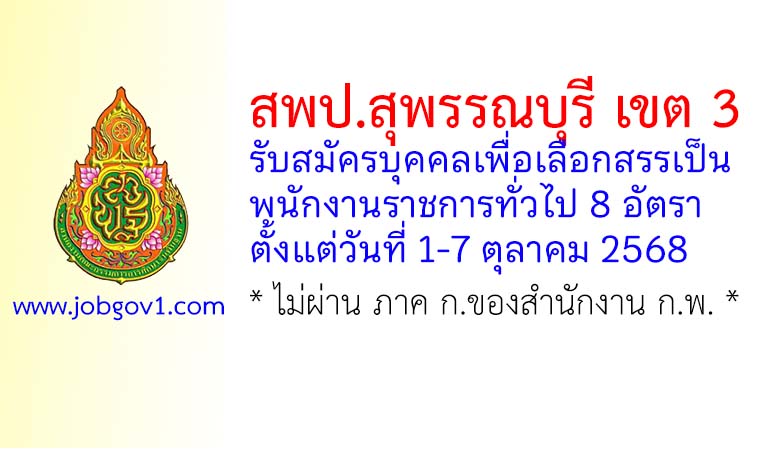สพป.สุพรรณบุรี เขต 3 รับสมัครบุคคลเพื่อเลือกสรรเป็นพนักงานราชการทั่วไป 8 อัตรา ตั้งแต่วันที่ 1-7 ตุลาคม 2568
