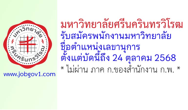 มหาวิทยาลัยศรีนครินทรวิโรฒ รับสมัครพนักงานมหาวิทยาลัย ตำแหน่งเลขานุการ ตั้งแต่บัดนี้ถึง 24 ตุลาคม 2568