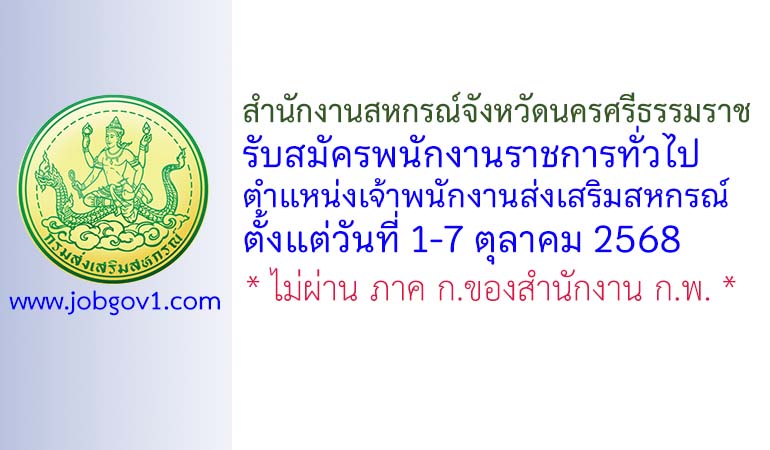 สำนักงานสหกรณ์จังหวัดนครศรีธรรมราช รับสมัครพนักงานราชการทั่วไป ตำแหน่งเจ้าพนักงานส่งเสริมสหกรณ์ ตั้งแต่วันที่ 1-7 ตุลาคม 2568