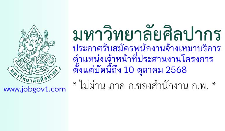 มหาวิทยาลัยศิลปากร รับสมัครพนักงานจ้างเหมาบริการ ตำแหน่งเจ้าหน้าที่ประสานงานโครงการ ตั้งแต่บัดนี้ถึง 10 ตุลาคม 2568