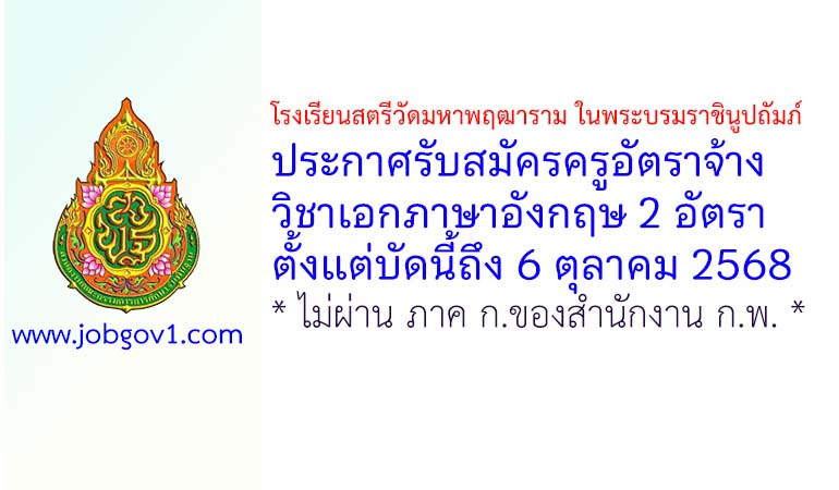 โรงเรียนสตรีวัดมหาพฤฒาราม ในพระบรมราชินูปถัมภ์ รับสมัครครูอัตราจ้าง วิชาภาษาอังกฤษ 2 อัตรา ตั้งแต่บัดนี้ถึง 6 ตุลาคม 2568