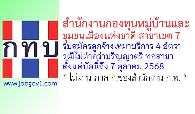 สำนักงานกองทุนหมู่บ้านและชุมชนเมืองแห่งชาติ สาขาเขต 7 รับสมัครลูกจ้างเหมาบริการ 4 อัตรา ตั้งแต่บัดนี้ถึง 7 ตุลาคม 2568