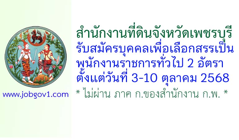 สำนักงานที่ดินจังหวัดเพชรบุรี รับสมัครบุคคลเพื่อเลือกสรรเป็นพนักงานราชการทั่วไป 2 อัตรา ตั้งแต่วันที่ 3-10 ตุลาคม 2568