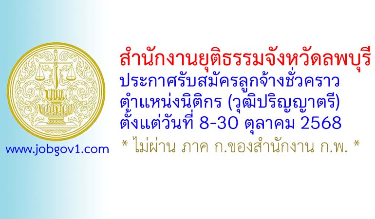 สำนักงานยุติธรรมจังหวัดลพบุรี รับสมัครลูกจ้างชั่วคราว ตำแหน่งนิติกร ตั้งแต่วันที่ 8-30 ตุลาคม 2568