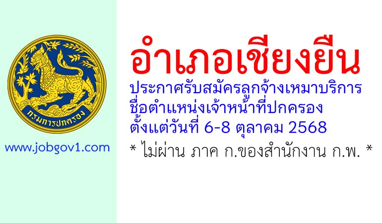 อำเภอเชียงยืน รับสมัครลูกจ้างเหมาบริการ ตำแหน่งเจ้าหน้าที่ปกครอง ตั้งแต่วันที่ 6-8 ตุลาคม 2568