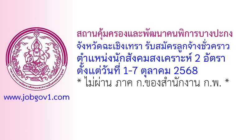 สถานคุ้มครองและพัฒนาคนพิการบางปะกง จังหวัดฉะเชิงเทรา รับสมัครลูกจ้างชั่วคราว ตำแหน่งนักสังคมสงเคราะห์ 2 อัตรา ตั้งแต่วันที่ 1-7 ตุลาคม 2568