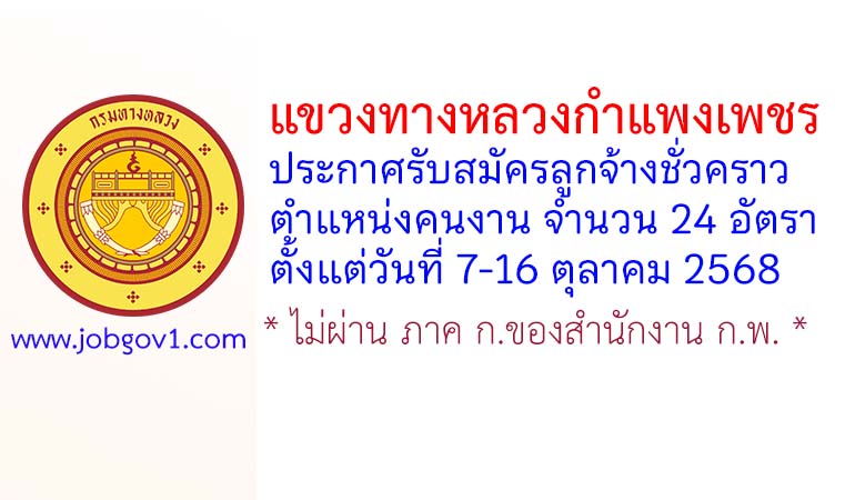 แขวงทางหลวงกำแพงเพชร รับสมัครลูกจ้างชั่วคราว ตำแหน่งคนงาน 24 อัตรา ตั้งแต่วันที่ 7-16 ตุลาคม 2568