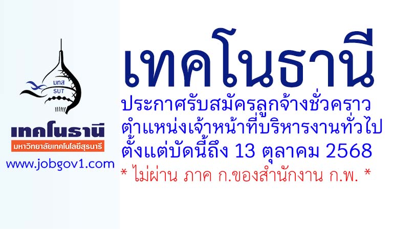 เทคโนธานี มหาวิทยาลัยเทคโนโลยีสุรนารี รับสมัครลูกจ้างชั่วคราว ตำแหน่งเจ้าหน้าที่บริหารงานทั่วไป ตั้งแต่บัดนี้ถึง 13 ตุลาคม 2568