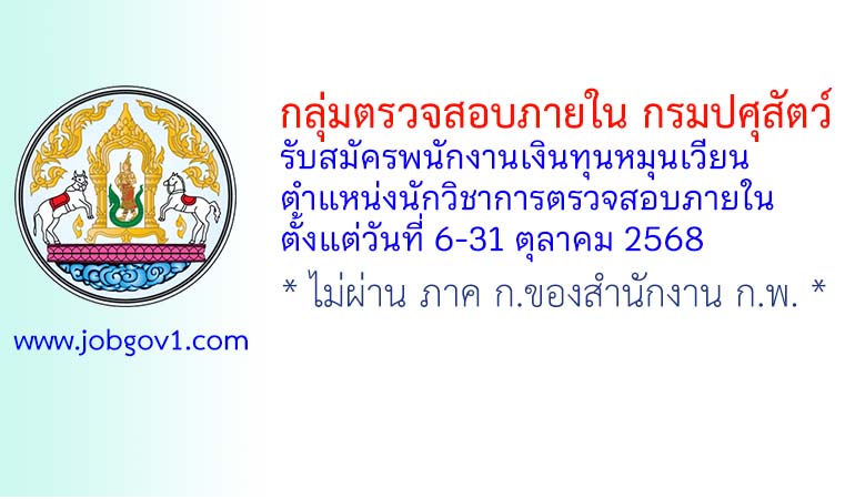 กลุ่มตรวจสอบภายใน กรมปศุสัตว์ รับสมัครบุคคลเพื่อเลือกสรรเป็นพนักงานเงินทุนหมุนเวียน ตำแหน่งนักวิชาการตรวจสอบภายใน ตั้งแต่วันที่ 6-31 ตุลาคม 2568
