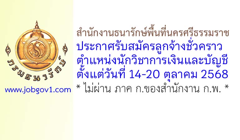 สำนักงานธนารักษ์พื้นที่นครศรีธรรมราช รับสมัครลูกจ้างชั่วคราว ตำแหน่งนักวิชาการเงินและบัญชี ตั้งแต่วันที่ 14-20 ตุลาคม 2568