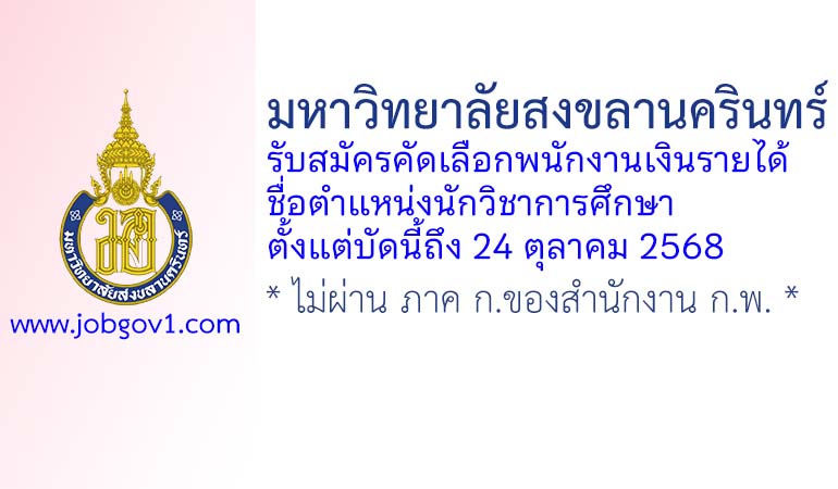 มหาวิทยาลัยสงขลานครินทร์ รับสมัครคัดเลือกพนักงานเงินรายได้ ตำแหน่งนักวิชาการศึกษา ตั้งแต่บัดนี้ถึง 24 ตุลาคม 2568