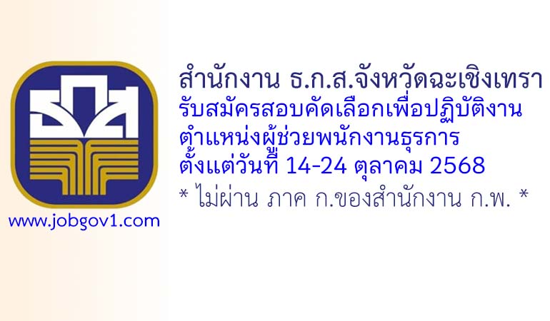 สำนักงาน ธ.ก.ส.จังหวัดฉะเชิงเทรา รับสมัครสอบคัดเลือกเพื่อปฏิบัติงาน ตำแหน่งผู้ช่วยพนักงานธุรการ ตั้งแต่วันที่ 14-24 ตุลาคม 2568
