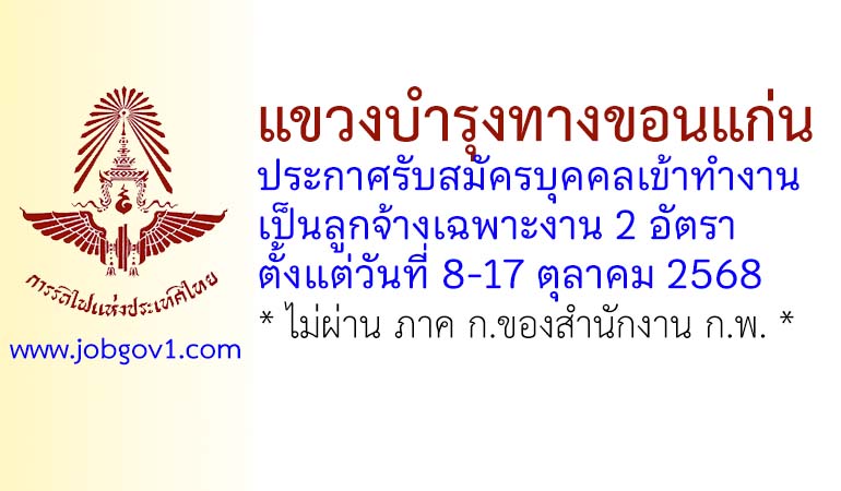 แขวงบำรุงทางขอนแก่น รับสมัครบุคคลเข้าทำงานเป็นลูกจ้างเฉพาะงาน 2 อัตรา ตั้งแต่วันที่ 8-17 ตุลาคม 2568