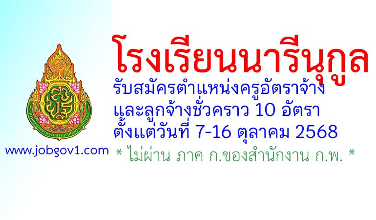 โรงเรียนนารีนุกูล รับสมัครครูอัตราจ้าง และลูกจ้างชั่วคราว 10 อัตรา ตั้งแต่วันที่ 7-16 ตุลาคม 2568