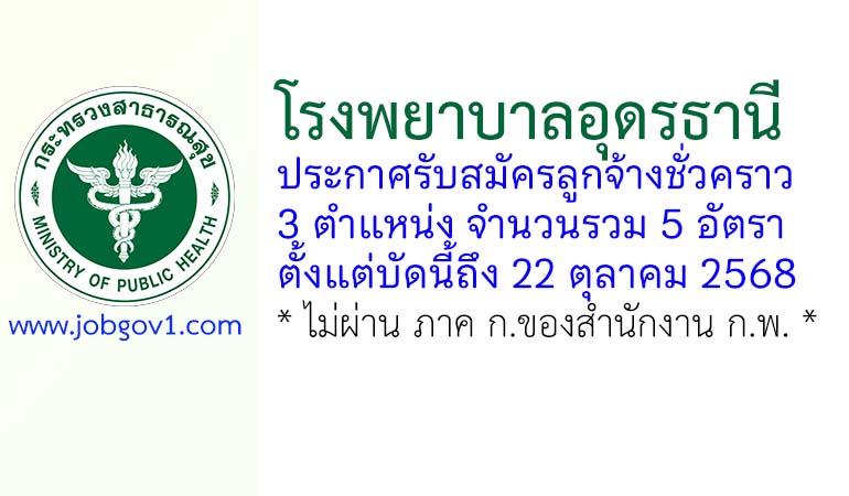 โรงพยาบาลอุดรธานี รับสมัครลูกจ้างชั่วคราว 5 อัตรา ตั้งแต่บัดนี้ถึง 22 ตุลาคม 2568