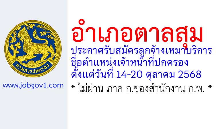 อำเภอตาลสุม รับสมัครลูกจ้างเหมาบริการ ตำแหน่งเจ้าหน้าที่ปกครอง ตั้งแต่วันที่ 14-20 ตุลาคม 2568