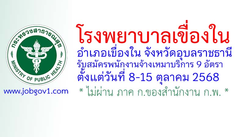 โรงพยาบาลเขื่องใน รับสมัครพนักงานจ้างเหมาบริการ 9 อัตรา ตั้งแต่วันที่ 8-15 ตุลาคม 2568