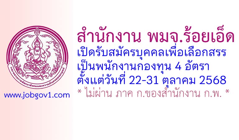 สำนักงาน พมจ.ร้อยเอ็ด รับสมัครบุคคลเพื่อเลือกสรรเป็นพนักงานกองทุน 4 อัตรา ตั้งแต่วันที่ 22-31 ตุลาคม 2568