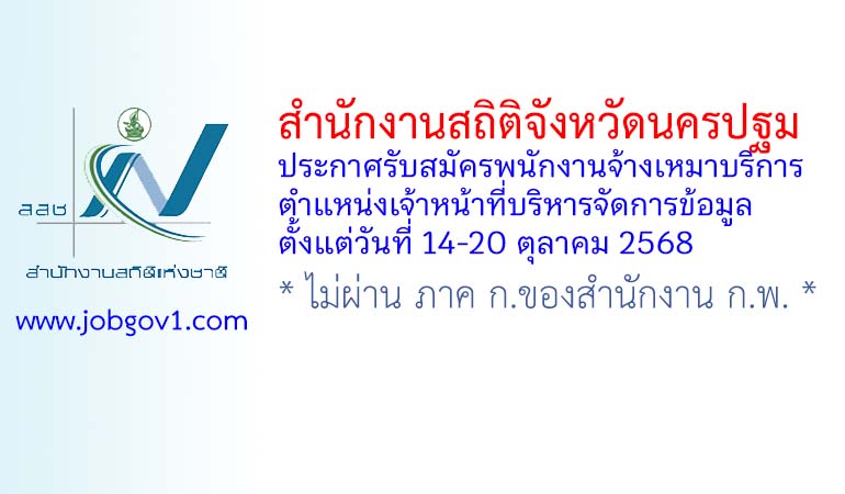 สำนักงานสถิติจังหวัดนครปฐม รับสมัครพนักงานจ้างเหมาบริการ ตำแหน่งเจ้าหน้าที่บริหารจัดการข้อมูล ตั้งแต่วันที่ 14-20 ตุลาคม 2568