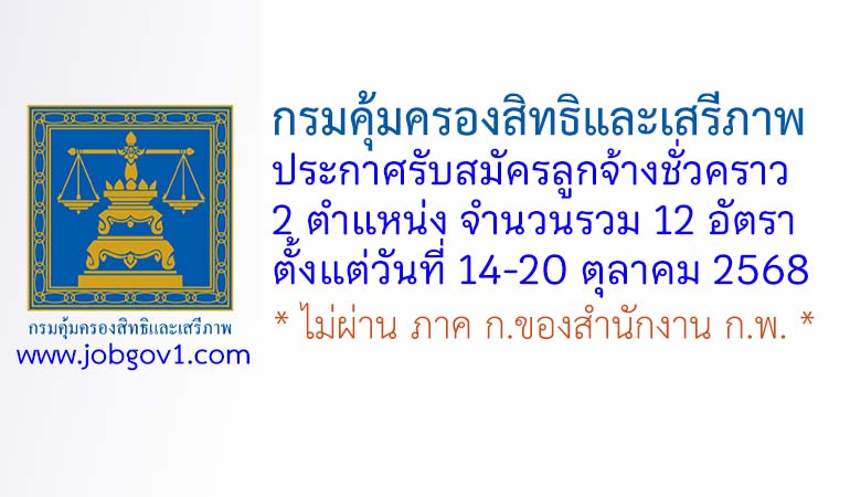 กรมคุ้มครองสิทธิและเสรีภาพ รับสมัครลูกจ้างชั่วคราว 12 อัตรา ตั้งแต่วันที่ 14-20 ตุลาคม 2568