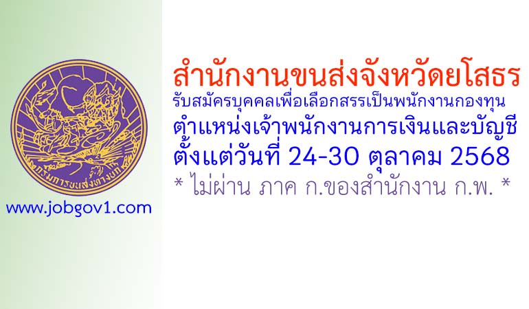 สำนักงานขนส่งจังหวัดยโสธร รับสมัครบุคคลเพื่อเลือกสรรเป็นพนักงานกองทุน ตำแหน่งเจ้าพนักงานการเงินและบัญชี ตั้งแต่วันที่ 24-30 ตุลาคม 2568
