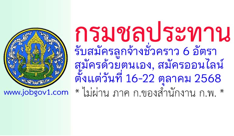 กรมชลประทาน รับสมัครลูกจ้างชั่วคราว จำนวน 6 อัตรา ตั้งแต่วันที่ 16-22 ตุลาคม 2568