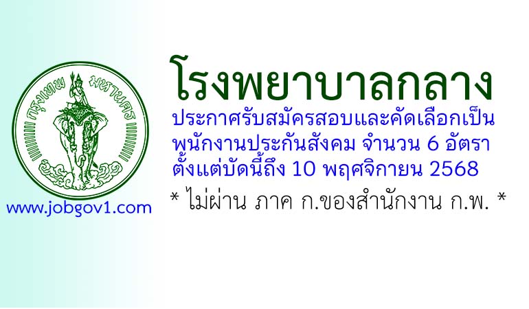 โรงพยาบาลกลาง รับสมัครสอบและคัดเลือกเป็นพนักงานประกันสังคม 6 อัตรา ตั้งแต่บัดนี้ถึง 10 พฤศจิกายน 2568
