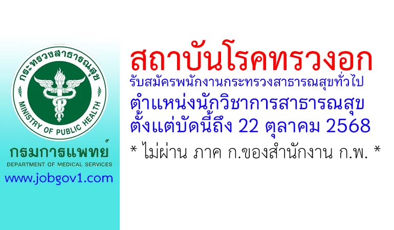 สถาบันโรคทรวงอก รับสมัครพนักงานกระทรวงสาธารณสุขทั่วไป ตำแหน่งนักวิชาการสาธารณสุข ตั้งแต่บัดนี้ถึง 22 ตุลาคม 2568