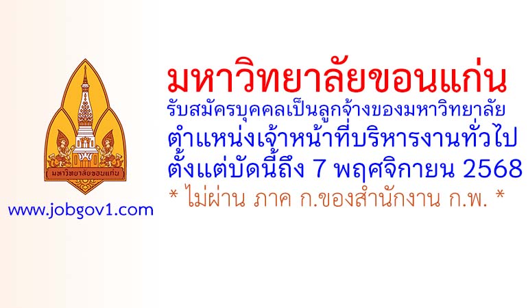มหาวิทยาลัยขอนแก่น รับสมัครคัดเลือกบุคคลเป็นลูกจ้างของมหาวิทยาลัย ตำแหน่งเจ้าหน้าที่บริหารงานทั่วไป ตั้งแต่บัดนี้ถึง 7 พฤศจิกายน 2568