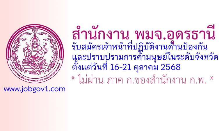 สำนักงาน พมจ.อุดรธานี รับสมัครเจ้าหน้าที่ปฏิบัติงานด้านป้องกันและปราบปรามการค้ามนุษย์ในระดับจังหวัด ตั้งแต่วันที่ 16-21 ตุลาคม 2568