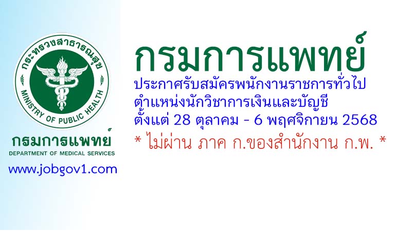กรมการแพทย์ รับสมัครพนักงานราชการทั่วไป ตำแหน่งนักวิชาการเงินและบัญชี ตั้งแต่ 28 ตุลาคม – 6 พฤศจิกายน 2568