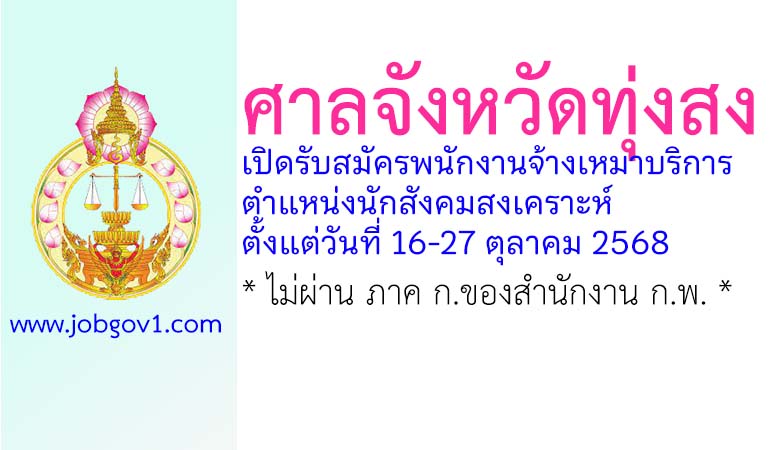 ศาลจังหวัดทุ่งสง รับสมัครพนักงานจ้างเหมาบริการ ตำแหน่งนักสังคมสงเคราะห์ ตั้งแต่วันที่ 16-27 ตุลาคม 2568