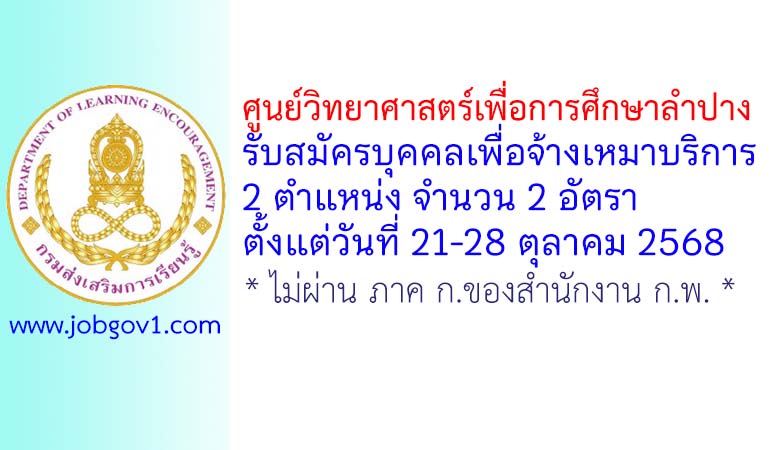 ศูนย์วิทยาศาสตร์เพื่อการศึกษาลำปาง รับสมัครบุคคลเพื่อจ้างเหมาบริการ 2 อัตรา ตั้งแต่วันที่ 21-28 ตุลาคม 2568