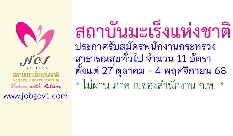 สถาบันมะเร็งแห่งชาติ รับสมัครพนักงานกระทรวงสาธารณสุขทั่วไป 11 อัตรา ตั้งแต่ 27 ตุลาคม – 4 พฤศจิกายน 2568